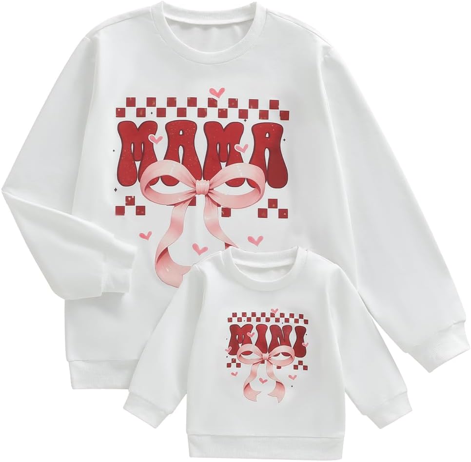 - Design: Valentines family matching sweatshirt,classic round neck, long sleeve MAMA/MINI bowknot graphic casual pullover top, matching Valentine sweatshirt enhance the festive atmosphere